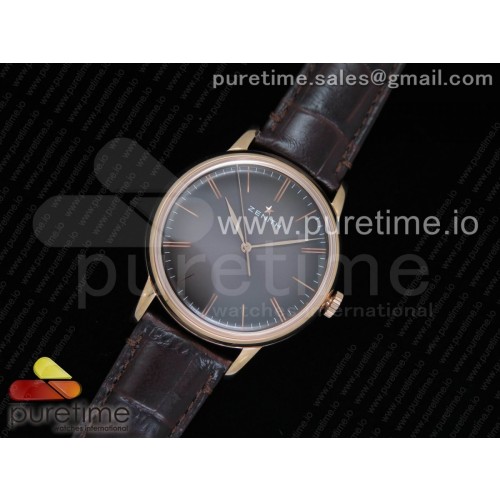 제니스 엘리트 클래식 42 로즈골드금장 그레이다이얼 가죽스트랩 Elite Classic 42 RG Gray Dial on Brown Leather Strap MIYOTA 9015