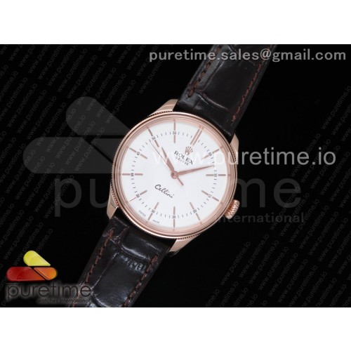 MK공장 v4 롤렉스 셀리니 타임 50509 로즈골드 화이트다이얼 가죽스트랩 Cellini Time 50509 RG White Dial Sticks Marker on Brown Leather Strap A3132 V4 > 롤렉스