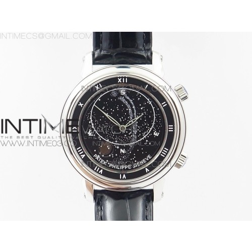 TW공장 파텍필립 6104P 문 스틸 블랙다이얼 블랙가죽스트랩 6104P MOON SS BLACK DIAL ON BLACK LEATHER STRAP A240 V2