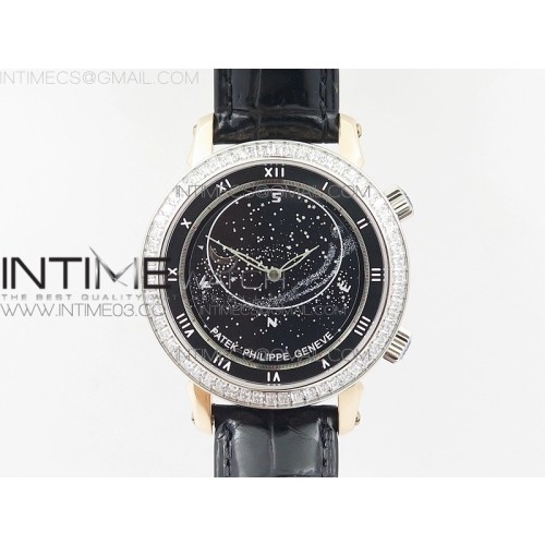 TW공장 파텍필립 6104P 문 로즈골드금장 블랙다이얼 다이아몬드베젤 가죽스트랩 6104P MOON RG BLACK DIAL DIAMOND BEZEL ON BLACK LEATHER STRAP A240 V2