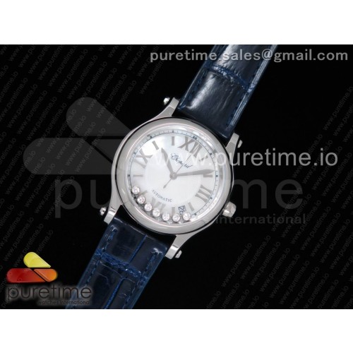 OX공장 쇼파드 해피스포츠 스틸 화이트다이얼 블루가죽스트랩Happy Sport Automatic SS 36mm White Dial on Blue Leather Strap A2892