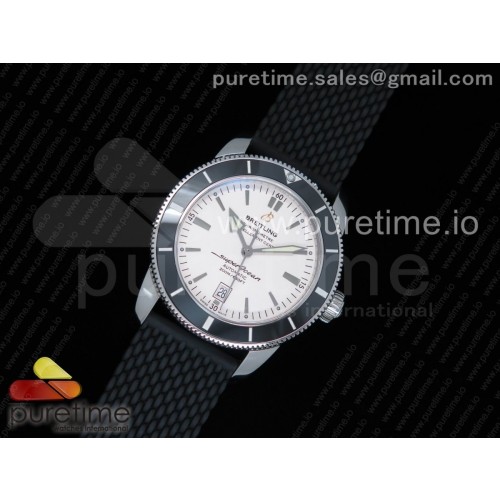 OM공장 브라이틀링 슈퍼오션 헤리티지2 스틸 화이트다이얼 블랙베젤 러버스트랩 SuperOcean Heritage ii 42mm SS White Dial Black Bezel on Black Rubber Strap A2824 (Free Rubber Strap) > 브라이틀링