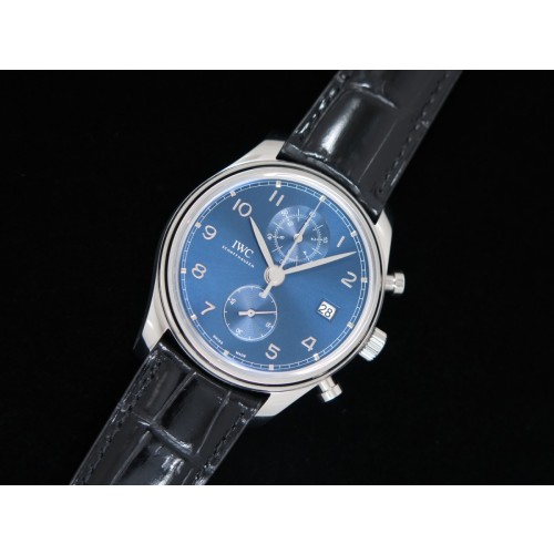 YL공장 IWC 포르투기저 크로노 클래식 42 스틸 블루다이얼 가죽스트랩 IWC Portugieser Chrono Classic 42 IW3903 Blue Dial on Black Leather Strap A7750 > IWC