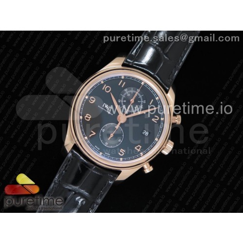 YL공장 IWC 포르투기저 크로노 클래식 42 로즈골드금장 블랙다이얼 가죽스트랩 IWC Portugieser Chrono Classic 42 RG IW3903 Black Dial on Brown Leather Strap A7750