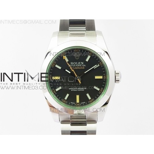 DJ공장 롤렉스 밀가우스 904L 스틸 블랙다이얼 브레이슬릿 MILGAUSS 116400 904L SS BLACK DIAL ON 904L SS BRACELET A2836 (REAL GREEN SAPPHIRE CRYSTAL) > 롤렉스