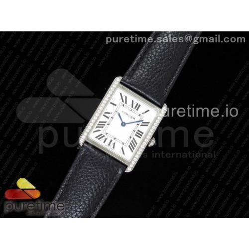 AF공장 까르띠에 탱크솔로 레이디즈 24MM 스틸 화이트다이얼 다이아몬드베젤 소가죽스트랩 Tank Solo Ladies 24mm SS White Dial Diamonds Bezel on Black Leather Strap Ronda Quartz