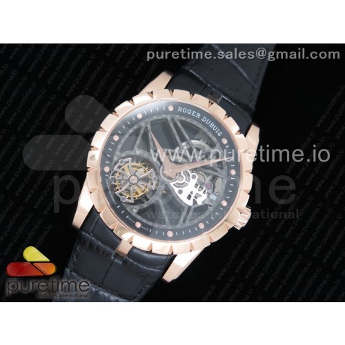 JB공장 로져드뷔 엑스칼리버 투어빌론 로즈골드금장 스켈레톤다이얼 가죽스트랩 Excalibur Rddbex0393 RG Skeleton Dial on Black Leather Strap A2136 Tourbillon