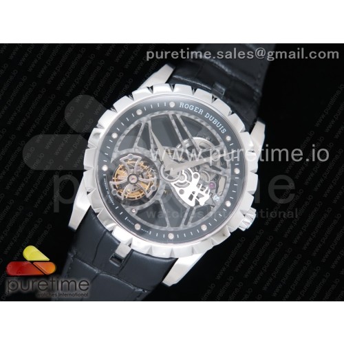 JB공장 로져드뷔 엑스칼리버 투어빌론 실버 스켈레톤다이얼 가죽스트랩 Excalibur Rddbex0393 SS Skeleton Dial on Black Leather Strap A2136 Tourbillon