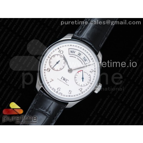• YL공장 V2 IWC 포르투기저 애뉴얼캘린더 스틸 화이트다이얼 블루핸즈 가죽스트랩 IWC Portuguese Real PR Real Annual Calendar IW5035 White Dial SS Markers on Black Leather Strap A52850 V2