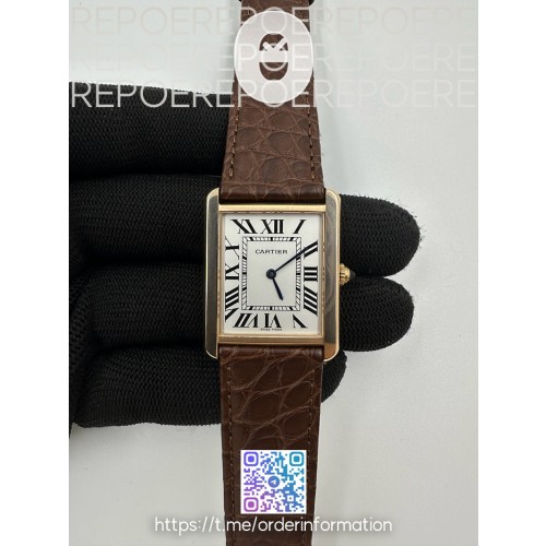 AF공장 까르띠에 탱크솔로 27 라지 로즈골드금장 화이트다이얼 가죽스트랩 TANK SOLO LADIES 27MM RG WHITE DIAL ON BROWN LEATHER STRAP RONDA QUARTZ