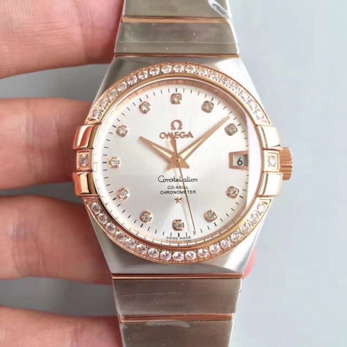 • 오메가 컨스텔레이션 로즈골드 금통 실버다이얼 다이아몬드베젤 38