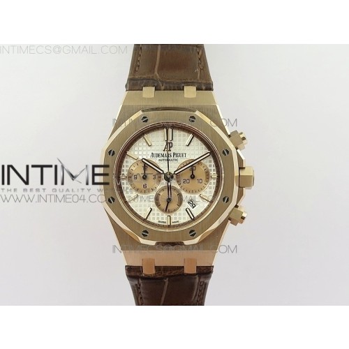 om공장 오데마피게 로얄오크 크로노그래프 26331 로즈골드금장 브라운가죽스트랩 ROYAL OAK CHRONO 26331ST RG WHITE DIAL ON BROWN LEATHER STRAP A7750(FREE RUBBER STRAP)