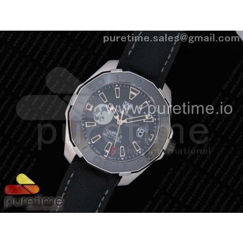 • OX공장 태그호이어 아쿠아레이서5 스틸 43MM 문다이얼 블랙러버스트랩 Aquaracer Calibre 5 Moon Men's Watch 43mm Ceramic Bezel Black Dial on Nylon Strap SW200