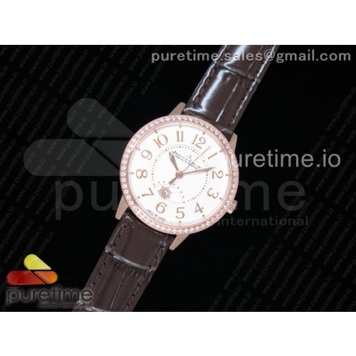 ZF공장 예거르쿨트르 랑데뷰 로즈골드 금통 화이트텍스쳐다이얼 다이아몬드베젤 가죽스트랩 Rendez-Vous Night & Day RG White Textured Dial Diamonds Bezel on Brown Leather Strap A898