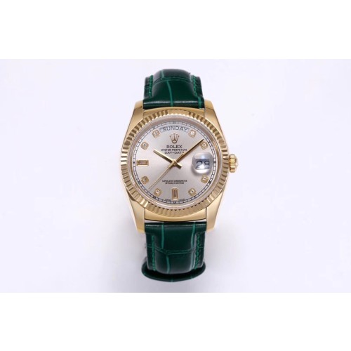 TR공장 롤렉스 데이데이트 36 옐로우골드 금통 실버다이얼 가죽스트랩 > 롤렉스