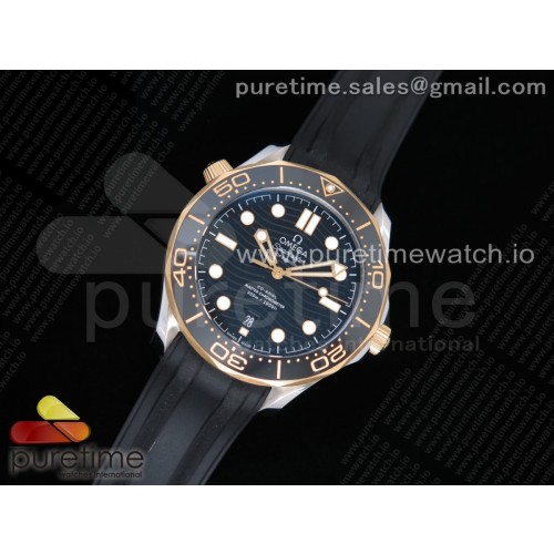 OM공장 오메가 씨마스터 다이버 300M 로즈골드 콤비 블랙물결텍스쳐다이얼 러버스트랩 2018 Seamaster Diver 300M SS/RG Black Ceramic Black Dial on Black Rubber Strap A8800 (Black Balance Wheel)