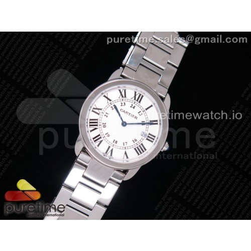 GP공장 까르띠에 롱드솔로 36MM 스틸 화이트다이얼 브레이슬릿 Ronde Solo De Cartier 36mm SS White Dial on SS Bracelet Ronda Quartz