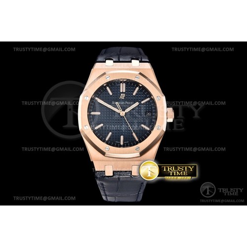 OM공장 오데마피게 로얄오크 41MM 로골 블루다이얼 가죽스트랩 Royal Oak 41mm 15500 Basel 2019 RG/LE Blue OMF MY9015