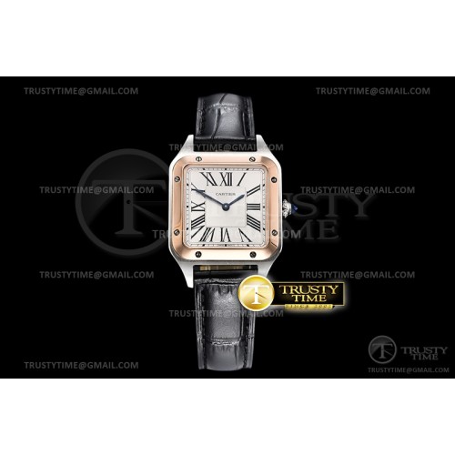 XF공장 까르띠에 산토스 뒤몽 27.5 로즈골드 콤비 실버다이얼 가죽스트랩