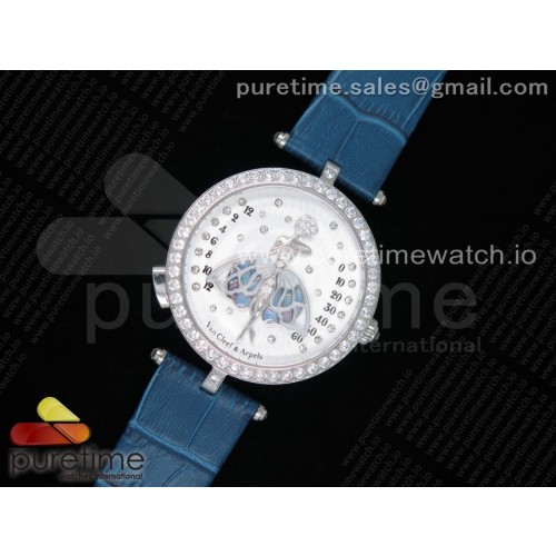 반클리프 레이디 아펠스 발레린 엔찬티 화이트다이얼 가죽스트랩 Lady Arpels Ballerine Enchantée SS White Dial on Blue Leather Strap Jap Quartz