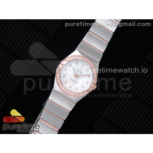 K11공장 오메가 컨스텔레이션 27MM 로골 자개다이얼 브레이슬릿 Constellation Ladies 27mm SS/RG Diamonds Bezel White MOP Textured Dial Diamonds Markers on SS/RG Bracelet ETA Quartz