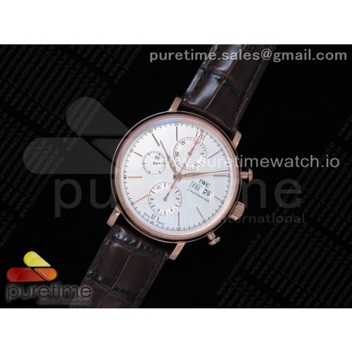 ZF공장 포르토피노크로노 로즈골드금통 화이트다이얼 가죽스트랩 Portofino Chrono RG White Dial on Brown Leather Strap A7750 > IWC