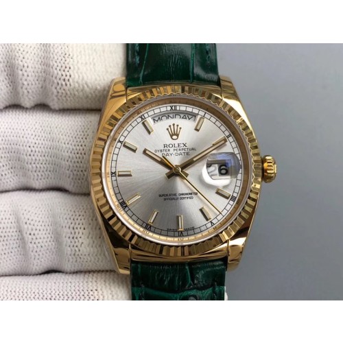 무명공장 롤렉스 데이데이트 36 옐로우골드 실버다이얼 가죽스트랩 > 롤렉스