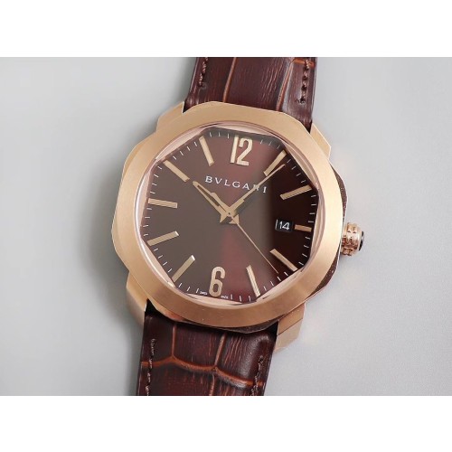 BV공장 불가리 옥토 로즈골드 금통 브라운다이얼 가죽스트랩