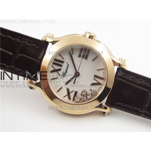 ZF공장 쇼파드 해피스포츠 로즈골드 금통 자개다이얼 가죽스트랩 Happy Sport Mini RG ZF MOP Dial on Black Leather Strap Swiss ETA 955.112 > 쇼파드