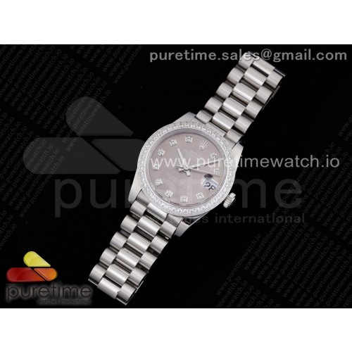 GM공장 롤렉스 데이저스트 31 자개다이얼 브레이슬릿 DateJust 31 Ladies 278289 GMF 316L Steel Brown MOP Dial Diamonds Bezel and Markers on President Syle Bracelet