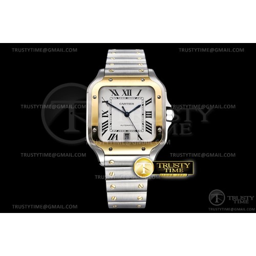 3K공장 까르띠에 라지 까르띠에 40 옐로우골드 콤비 화이트다이얼 스마트링크브레이슬릿 Santos De Cartier Mens XL YG/SS White 3KF MY9015
