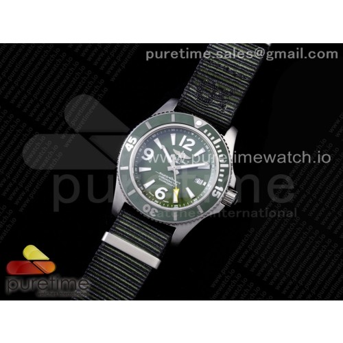 TF공장 브라이틀링 슈퍼오션 그린다이얼 나일론스트랩 Superocean Automatic 44 Green Dial Green Bezel on Green Nylon Strap A2824