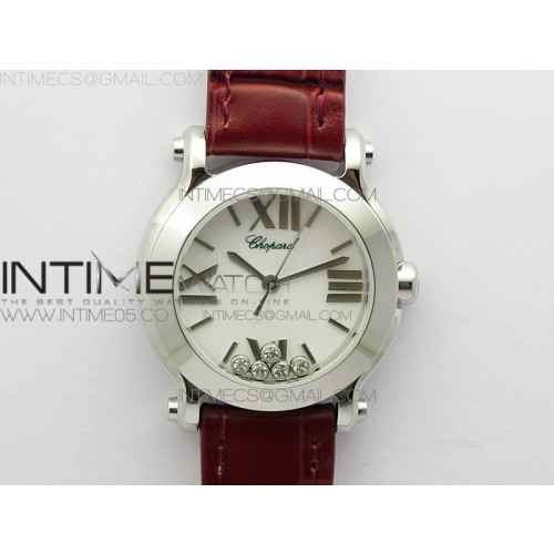 ZF공장 쇼파드 해피스포츠 자개다이얼 가죽스트랩 Happy Sport Mini SS ZF MOP Dial on Red Leather Strap Swiss ETA 955.112 > 쇼파드