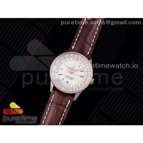 V7공장 브라이틀링 내비타이머 로골 화이트다이얼 가죽스트랩 Navitimer 1 SS 41mm RG Bezel White Dial on Brown Leather Strap A2824