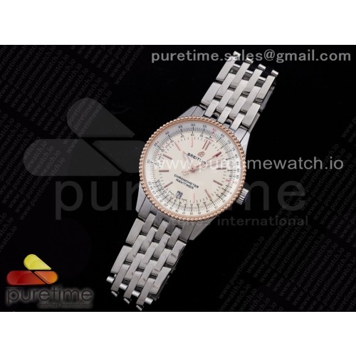 • TF공장 38MM 브라이틀링 내비타이머 로골 화이트다이얼 Navitimer 1 SS 38mm RG Bezel White Dial on SS Bracelet A2824