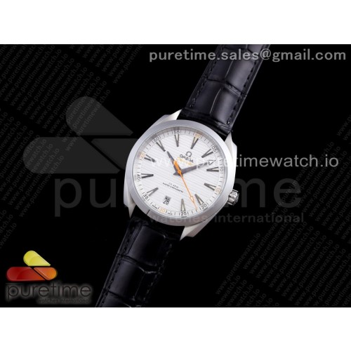 OX공장 오메가 씨마스터 아쿠아테라 화이트다이얼 가죽스트랩 Aqua Terra 150M Master Chronometers OXF 1:1 Best Edition White Dial Orange Hand on Black Leather Strap A8900