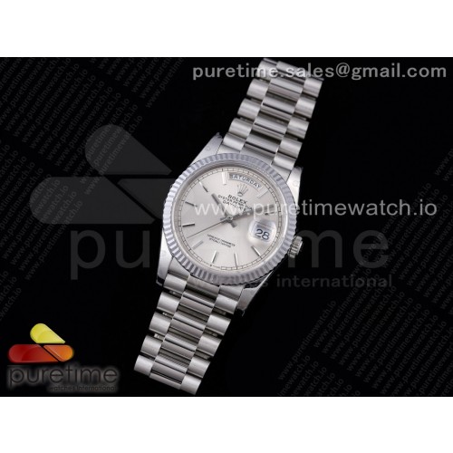 GM공장 롤렉스 데이데이트 36 실버다이얼 프레지던트브레이슬릿 2836 Day Date 36 128239 GMF 1:1 Best Edition 904L Steel Silver Dial Stick Markers on Bracelet A2836