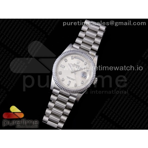 • GM공장 데이데이트 36 실버다이얼 2836 Day Date 36 128239 GMF 1:1 Best Edition 904L Steel Silver Dial Diamonds Markers on Bracelet A2836