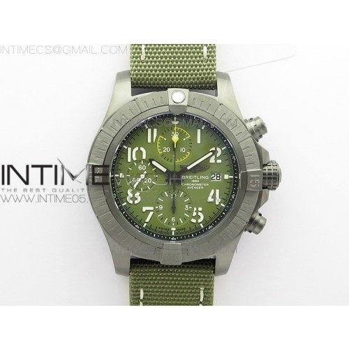 브라이틀링 어벤져 밴디트 티타늄 DLC 그린다이얼 나일론 스트랩 Avenger Bandit V13317 Titanium DLC B50 Best Edition Green Dial Numbers Makers on Green Nylon strap A7750