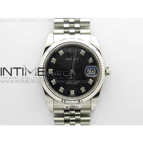 DJ공장 롤렉스 데이저스트 36 블랙컴퓨터다이얼 2824 Datejust 36mm 116234 904L SS DJF 1:1 Best Edition Diamond Black Jubilee Dial On SS Jubilee Bracelet A2824 > 롤렉스
