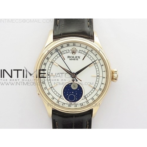 KZ공장 롤렉스 셀리니 로즈골드 금통 화이트다이얼 가죽스트랩 Cellini 50535 Moonphase RG KZF Best Edition White dial on leather strap A3195 (free a tool) > 롤렉스