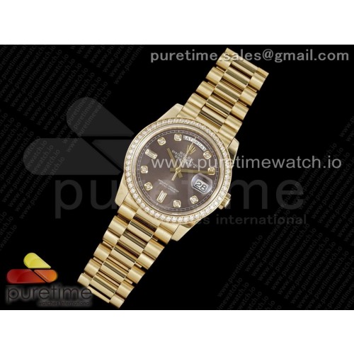 GM공장 롤렉스 데이데이트 36 옐로우골드금통 브라운다이얼 2836 Day Date 36 YG 904L Steel Diamonds Bezel GMF 1:1 Best Edition Brown Diamonds Dial on YG Bracelet A2836