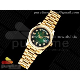 GM공장 롤렉스 데이데이트 36 옐로우골드금통 그린다이얼 2836 Day Date 40 YG 904L Steel Fluted Bezel GMF 1:1 Best Edition Green Diamonds Dial on YG Bracelet A2836