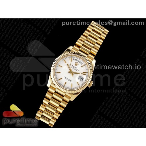 • GM공장 롤렉스 데이데이트 40 옐로우골드 금통 화이트다이얼 2836 Day Date 40 YG 904L Steel Fluted Bezel GMF 1:1 Best Edition White Stick Dial on YG Bracelet A2836