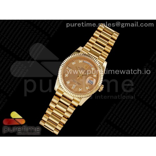 Day Date 40 YG 904L Steel Fluted Bezel GMF 1:1 Best Edition YG Diamonds Dial on YG Bracelet A2836