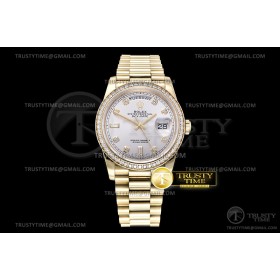 • GM공장 롤렉스 데이데이트 36 옐로우골드 금통 다이아몬드베젤 실버다이얼 2836 DayDate 36mm Flt Pres 904L Dia YG/YG SW/Dia GMF A2836