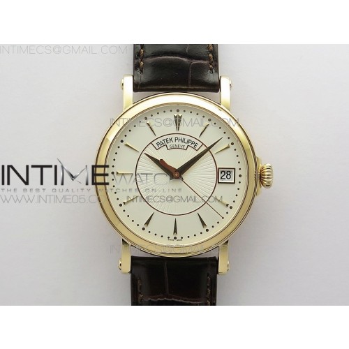 • ZF공장 칼라트라바 로골 화이트다이얼 가죽스트랩 Calatrava 5153G-010 RG ZF 1:1 Best Edition White textured dial on Brown Leather Strap A324CS