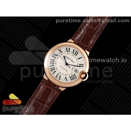 AF공장 까르띠에 발롱블루 42 로즈골드 금통 화이트다이얼 악어스트랩 2824 Ballon Bleu 42mm RG AF 1:1 Best Edition White Textured Dial on Brown Leather Strap A2824