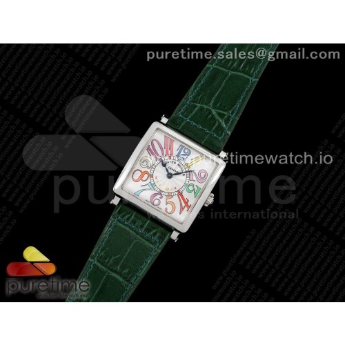 ZF공장 프랭크뮬러 마스터스퀘어 화이트다이얼 가죽스트랩 Master Square SS Ladies ZF 1:1 Best Edition White Colorful Arabic Dial on Green Leather Strap Ronda Quartz