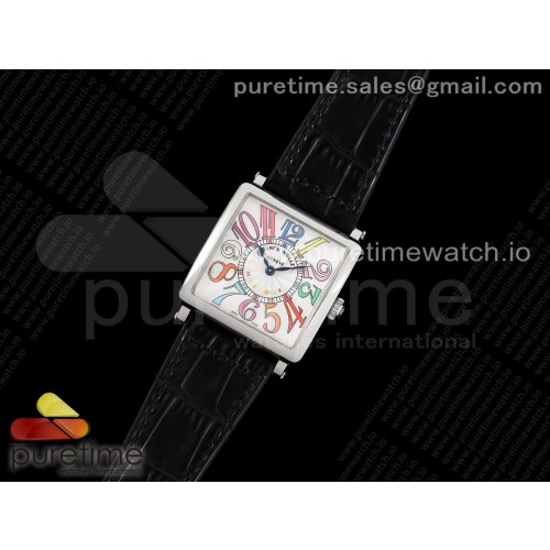 ZF공장 프랭크뮬러 마스터스퀘어 화이트다이얼 가죽스트랩 Master Square SS Ladies ZF 1:1 Best Edition White Colorful Arabic Dial on Black Leather Strap Ronda Quartz